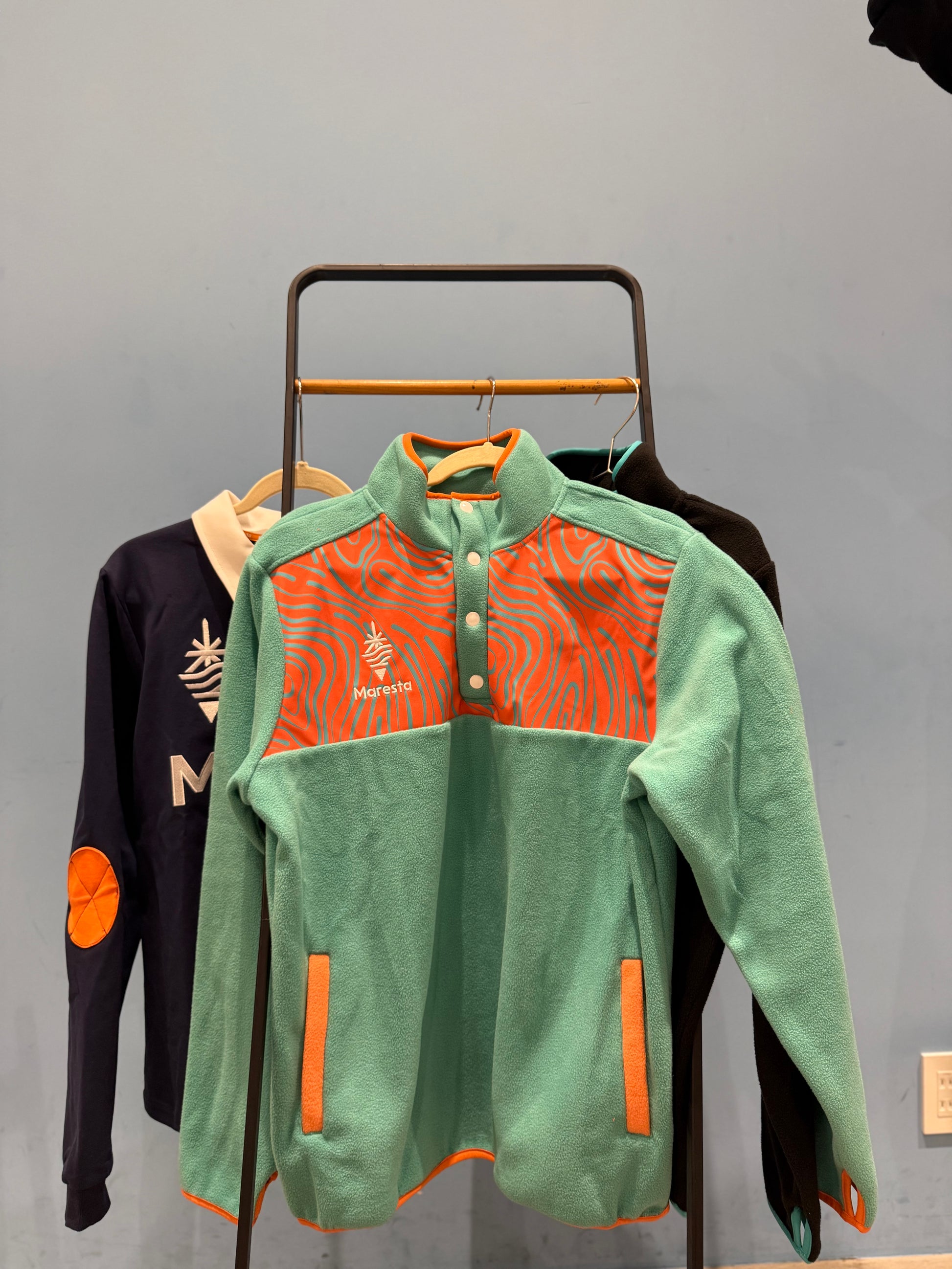 • Lightweight and warm fleece material • Half-pullover design with snap buttons • Convenient thumbholes on the cuffs • Side pockets for added functionality